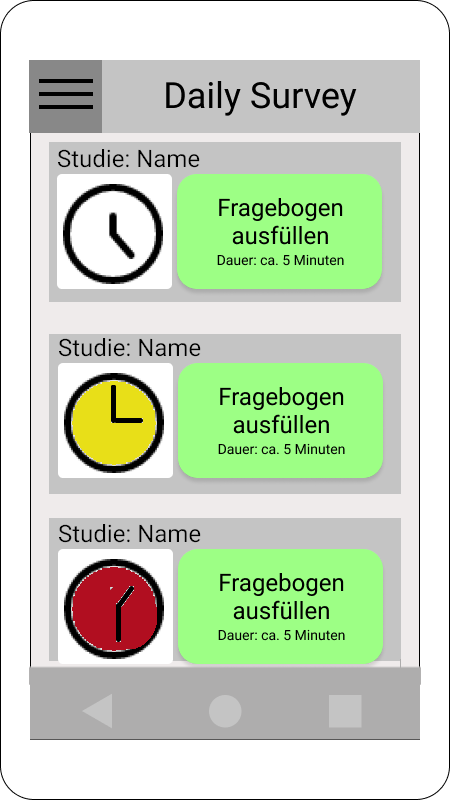 - Die Anzeige besteht aus dem Namen der Studie, der verbleibenden Bearbeitungszeit,